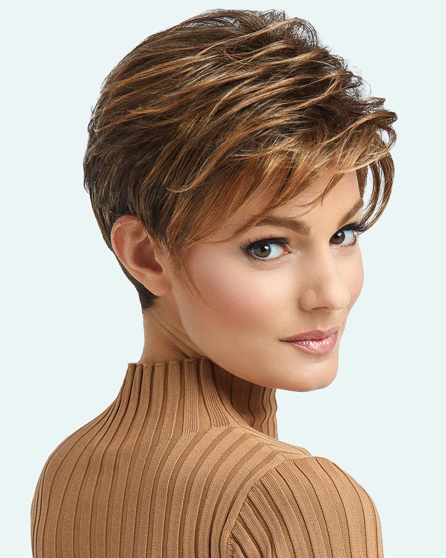 Advanced French by Raquel Welch. Long layers throughout the top and crown combine with loose textured lengths to create a completely free-formed, windswept look. For added styling excitement, this short silhouette is complimented by a smooth neck hugging nape.