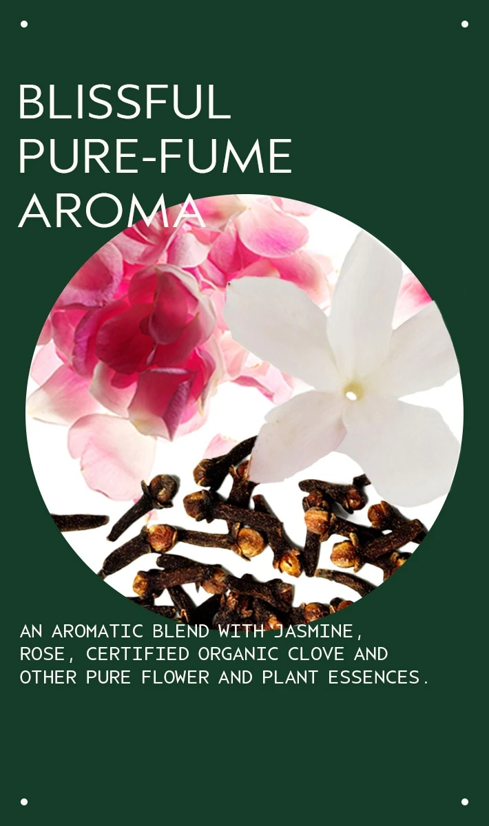 Aveda’s own pure-fumeâ„¢ aroma with jasmine, rose, certified organic clove and other pure flower and plant essences.