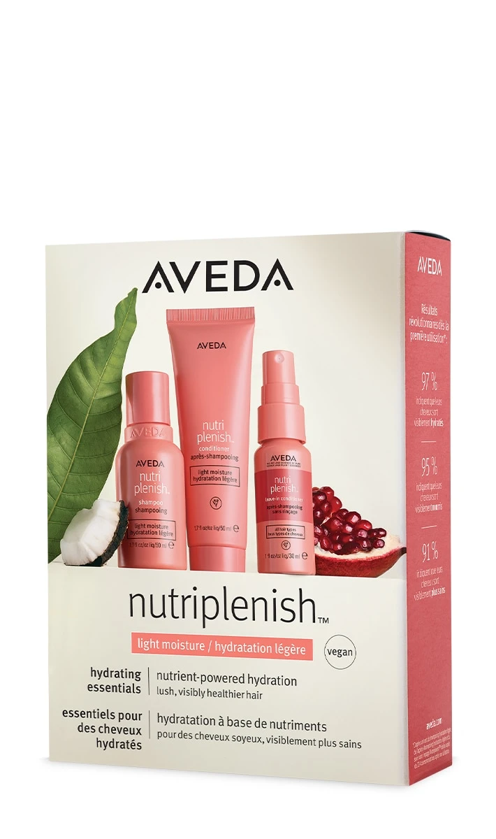 • set contains nutriplenish™ shampoo: light moisture 50 ml/1.7 fl oz, nutriplenish™ conditioner: light moisture 50 ml/1.7 fl oz, and nutriplenish™ leave-in conditioner 30 ml/1 fl oz