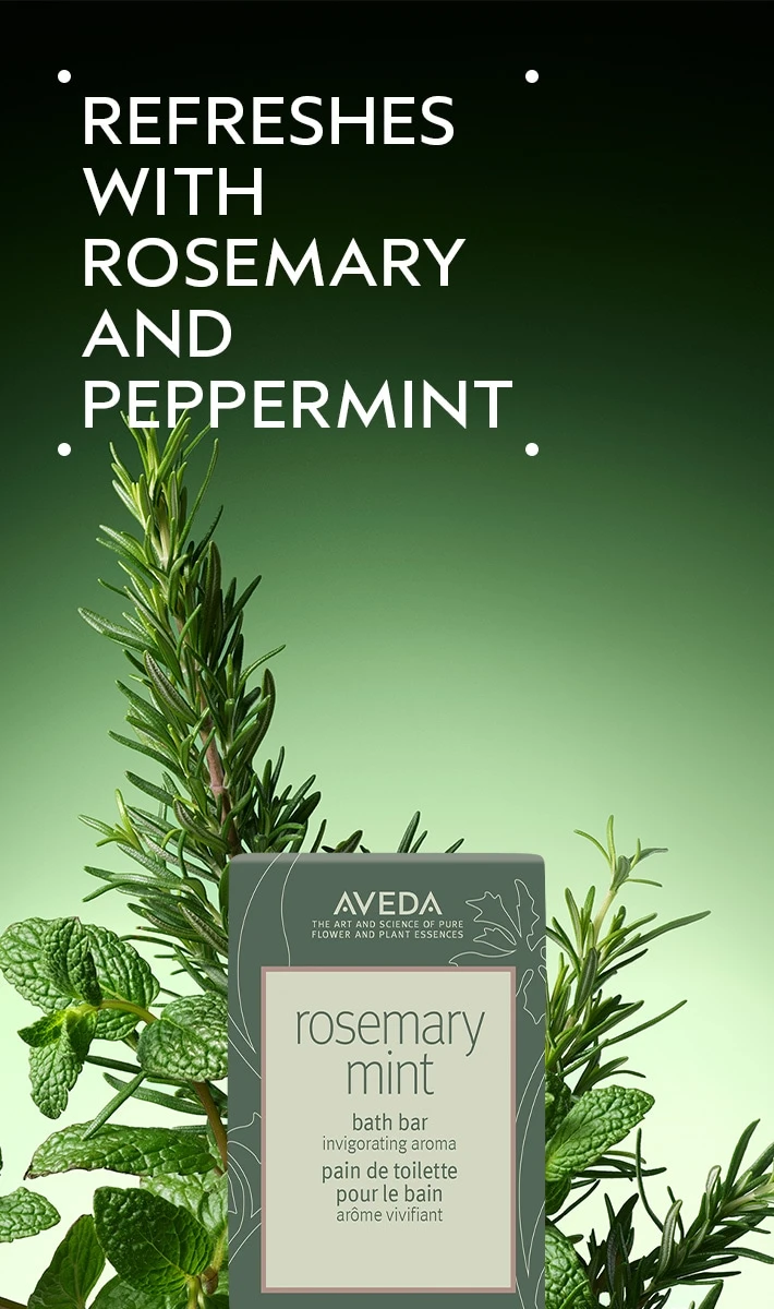 Bath bar with invigorating aroma of certified organic rosemary and peppermint that lingers after you rinse. Lightly exfoliates.