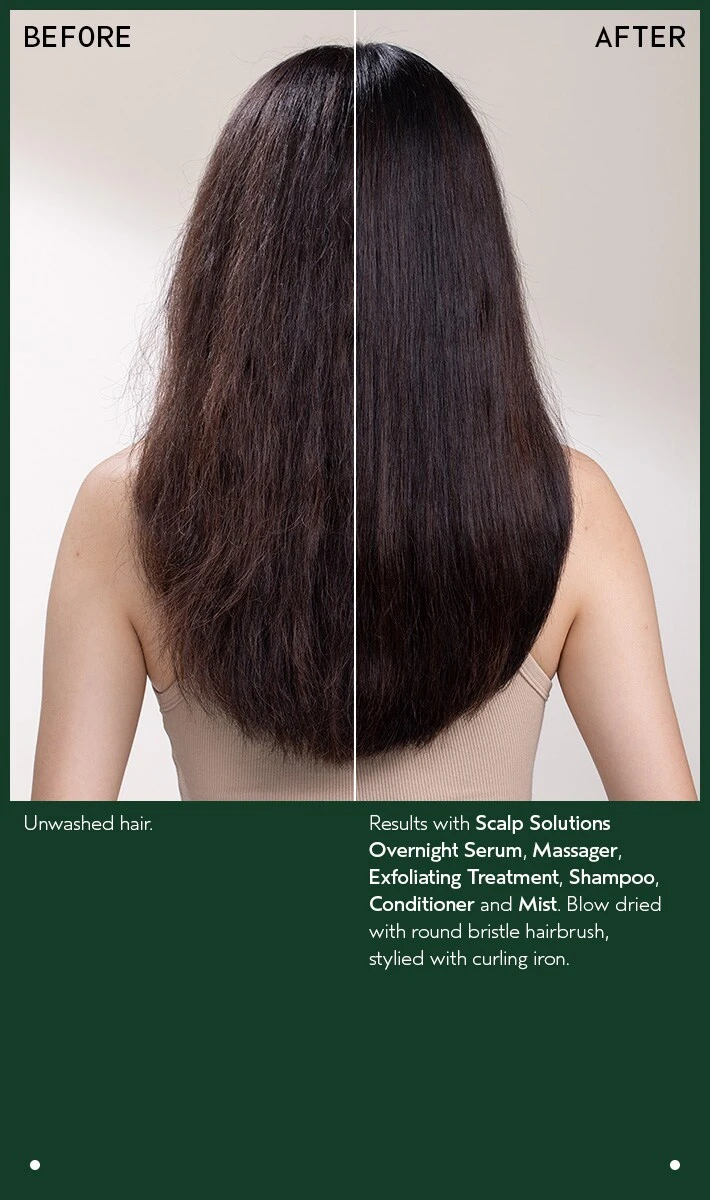 The design: The thin, long, bristles have a flexible reach to the scalp through wet hair. Bi-level filaments allow the longer filaments to touch the scalp, while the shorter filaments reach the hair. Soft, rounded ball tips are gentle for the scalp while providing deep exfoliation. The double concave design has a spherical topography, allowing the massager to adapt to the head’s shape. The curved handle is ergonomically designed to comfortably hold in your hand.