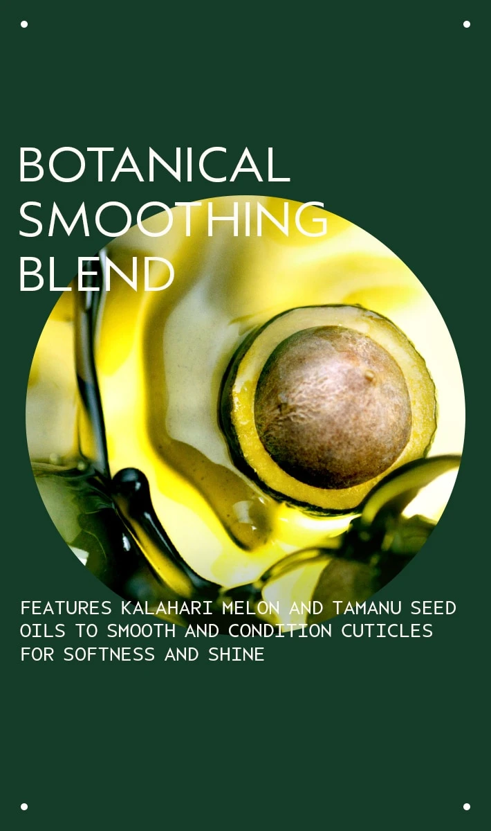 • Botanical smoothing oil blend – Features Kalahari melon seed oil and Tamanu oil. Smooths and conditions cuticles for softness and shine.